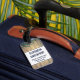 Une étiquette bagage personnalisée sur le devant et vos informations personnelles sur le dos avec un style rustique. Conçu avec une tête de cerf aux bois, en plaid rouge. Une image de planches de bois avec des feuilles de lierre vert pour l'arrière - plan lui donne une impression de campagne extérieure.