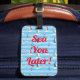 Balise de bagage Cette conception nautique présente un motif à bande bleue avec voiliers et ancres. Personnalisez cette étiquette de bagage avec un nom ou changez le texte en message personnel.