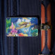 Peinture de soie d'une tortue verte et d'amis. Petits poissons dorés, poissons anges et autres se partagent la mer avec des algues colorées et des coraux. Amusant et lumineux pour les aquariums, les boutiques de cadeaux, les cadeaux et les cartes.