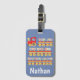 Colorful personalised kid's luggage tag with red train hauling the entire alphabet.
