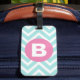 Étiquette À Bagage Trendy Light Blue Chevron Pink Monogram