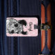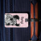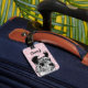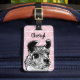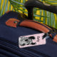 Nom personnalisé marque de bagage en lama noir et blanc avec un arrière - plan triangles.