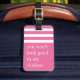 Lâche ce sac ! Dissuader tout voleur potentiel de bagages avec cette étiquette amusante dans une teinte rose vibrante qui rend votre sac facile à repérer. "Tu n'auras pas l'air bien dans mes vêtements" apparaît en lettres blanches sous une bordure blanche rayée. Personnalisez avec vos coordonnées sur le dos.