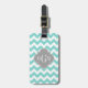 Étiquette À Bagage Turq / Aqua Wht Chevron Gris 3 Monogramme initial