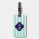 Étiquette À Bagage Turq / Aqua Wht Chevron Navy 3 Monogramme initial