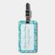 Étiquette À Bagage Turquoise & BlancFloral Damas Customisées