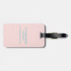 Marque de bagage moderne et minimale avec votre nom personnalisé ou texte aligné verticalement à droite sur un arrière - plan rose clair.