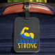Le design des étiquettes de bagages foncés a fléchi le profil du muscle bicep avec l'Ukraine texte fort en bleu et jaune du drapeau ukrainien. Slava Ukraini !