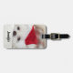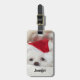 Une étiquette à bagages avec une adorable photo d'un mignon chien blanc portant un casquette de Noël rouge.