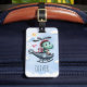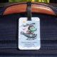 Un charmant hélicoptère piloté par un adorable dinosaure s'envole à travers un ciel apaisant, prêt à emmener votre petit dans un pays de rêve. Les couleurs douces et le design fantaisiste créent une atmosphère sereine, tandis que le pilote de dinosaure éveille leur imagination. Offrez un cadeau de confort et d'aventure avec cette étiquette de bagage personnalisée unique!