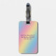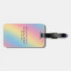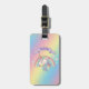 Cette étiquette de bagage personnalisée mignonne et colorée présente une belle illustration d'un arc-en-ciel couleur unicorne et pastel, sur un arrière - plan en arc-en-ciel dégradé. La parties scintillant en or faux accentue les parties supérieure et inférieure. De petites étoiles aux couleurs assorties entourent l'arc-en-ciel. Une bannière est imprimée au-dessus de la licorne avec un exemple de nom imprimé ci-dessous dans une police de caractères violets élégante. Vous pouvez personnaliser la balise bagage pour inclure votre propre nom ou texte personnalisé.