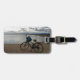 Une bicyclette sur la plage. Un cycliste s'arrête et descend de son vélo pour aller pêcher sur un vieux pilier emietté outre de la Baie de San Franciso.