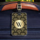 Un élégant motif de ventilateur art déco noir et or avec un monogramme personnalisé. Personnalisez le monogramme à l'avant de cette étiquette de bagage et ajoutez vos informations personnelles au verso en utilisant le modèle de conception facile. Cet article est un cadeau merveilleux pour les voyageurs fréquents.