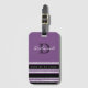 Étiquette À Bagage violet avec rayures, voyage féminin et monogrammé