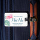 Amusant voyage de Mlle à Mme, week-end entre filles, mariage de destination ou étiquettes de bagages de lune de miel avec mon flamant rose aquarelle original et verdure tropicale sur fond blanc propre. Personnalisé avec vos détails dans un script calligraphique bleu girly et typographie sans serif. Le dos présente un motif de mes flamants roses aquarelles. Fait partie de ma série de cortège de mariée. Pour en voir plus, visitez www.zazzle.com/vginvites