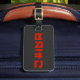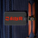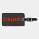 Red China Travel étiquette de bagages en noir et rouge avec nom personnalisé et numéro de téléphone au dos en blanc.