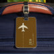Un article simple et élégant avec l'image graphique d'un avion sur un arrière - plan brun foncé, avec votre nom et vos initiales... pour identifier vos bagages à l'aéroport.