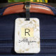 Étiquette À Bagage Wh & Gold Marble Gold Box, Black Name Monogram Vs2