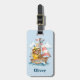 This charming personalized sailor bear luggage tag features an adorable brown bear wearing a classic yellow rain slicker and hat, happily steering his wooden boat.