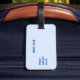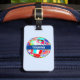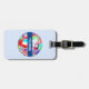 World globe tour et drapeaux sur le bleu clair Bagage Tag. Texte prêt à être personnalisé.
