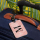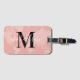 Voyagez dans le monde en beauté ! Cette étiquette de bagage moderne dispose d'une carte dorée/rose bleue rose de l'arrière - plan du monde avec monogramme personnalisé noir et blanc qui peut être personnalisée avec votre prénom ou nom et lettre initiale.