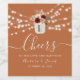Elégant, moderne, rustique faire-part de mariage en terre cuite orangée brûlée avec monogramme, de belles fleurs d'aquarelle en pot de maçon, des lumières à cordes et script de calligraphie tendance. Un choix parfait pour les mariages de automne romantiques. Santé!