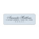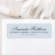 Étiquettes d'adresse de retour bleu poussiéreux élégantes avec votre nom dans une police de caractères calligraphiée élégante et l'adresse ci-dessous