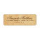 Étiquettes d'adresse de retour élégantes avec votre nom dans une police de calligraphie élégante et l'adresse ci-dessous sur un fond de papier vintage.