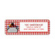 Cette jolie étiquette d'adresse de l'ébullition d'écrevisses présente une mignonne écrevisse assise dans une marmite avec du maïs et de l'oignon rouge. En arrière-plan, une nappe de pique-nique parfaite pour assortir votre fête de fruits de mer.