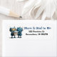 Donnez à votre baby shower-mail une torsion mécanique avec ces étiquettes d’adresse de retour personnalisables avec un adorable couple de robots tenant une boîte de pièces intitulée "Baby : some Assembly Required." 🤖 💛 Parfait pour les invitations, les cartes de remerciement, ou l’usage quotidien, ces étiquettes incluent votre nom et adresse personnalisés en plus de l’illustration de style livre pour enfants. ⚙️ 📫 Un détail amusant et futuriste que vos invités aimeront!