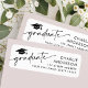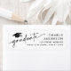 Les étiquettes d'adresse de retour comportant un capuchon de graduation et le texte "gradué" dans une police manuscrite. À droite se trouvent les champs modèles pour votre nom et adresse.