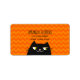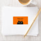 Étiquette d'adresse de retour de chat noir kawaii drôle, mignonne et moderne avec motif chevron orange. Choix parfait pour tout amateur de chats !