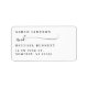 Étiquette d'adresse de retour élégante conçue dans une police noire classique sur un fond blanc avec un ornement fleuri.