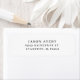Étiquette d'adresse de retour basée sur le texte moderne. Disposition centrée sur trois lignes, conçue dans une police serif simple.