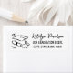 Ajoutez une touche finale amusante à vos enveloppes avec cette étiquette d'adresse de retour présentant une casquette de fin d'études et un diplôme dessinés à la main, ainsi qu'un nom en écriture moderne. Le design noir et blanc épuré a un look classique, minimal et facile à coordonner avec toutes les invitations de fin d'études ou la papeterie de fête. Personnalisez les lignes de nom et d'adresse pour un look soigné.