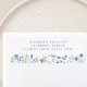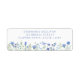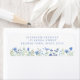 Cette étiquette d'adresse de retour de mariage floral est décorée de fleurs sauvages aquarelles bleues et de typographie élégante.