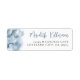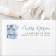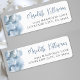 Une étiquette d'adresse de retour simple et élégante avec une sensation douce et rêveuse. Sur le côté gauche, un délicat détail de nuage à l'aquarelle ajoute une touche légère et aérienne. Sur la droite, le nom et l'adresse sont affichés dans un mélange clair de polices script et serif en bleu et gris, créant une mise en page soignée et facile à lire.