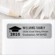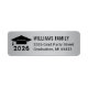 La conception moderne d'étiquette d'adresse personnalisée comporte une casquette de diplômé noire avec un gland, l'année de la promotion, le texte de l'adresse de retour et un fond argenté brillant imprimé numériquement qui peut être personnalisé pour correspondre à n'importe quelle école ou couleur d'invitation.