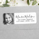 Élégantes étiquettes d'adresse de retour avec vos champs photo et modèle personnalisés pour le nom et l'adresse. Nom ou nom de famille dans une police de script de calligraphie élégante. Assurez-vous que la photo couvre la zone de prélèvement si vous n'utilisez pas de photo carré.