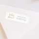 Cette simple conception d'étiquette d'adresse de retour comporte "baby shower" dans un script en or brossé faux à gauche du étiquette avec votre nom et adresse personnalisés à côté. Derrière le texte se trouve une image de confettis d'or.