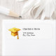 Une fausse casquette de graduation en or. Personnalisez et ajoutez votre nom et votre adresse. Lettres noires.