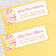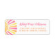 Un petit rayon de soleil Étiquette de adresse. Ce étiquette de adresse lumineux et gai est la touche finale parfaite pour envoyer des invitations d'anniversaire de baby shower ou "Premier voyage autour du soleil". Le design se caractérise par un soleil éclatant sur le côté gauche, avec des rayons colorés dans un mélange neutre entre le jaune, l'orange, le rouge, le turquoise et le bleu, ajoutant une touche ludique et joyeuse. A droite, les détails de l'adresse sont affichés dans un mélange de polices turquoises et orange, créant un look frais et animé. Entièrement personnalisable, vous pouvez mettre à jour le texte, les polices et les couleurs en fonction du thème de votre événement. Une façon amusante et festive d'envoyer vos invitations spéciales de célébration!