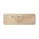 Étiquette d'adresse de retour en or rose calligraphiée moderne élégante pour invitations de mariage avec dentelle florale dorée et guirlandes de lumières.