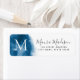 Étiquette Adresse de retour initiale du monogramme bleu aqua