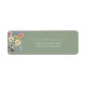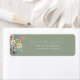 Ajoutez une touche botanique charmante à votre correspondance de mariage ou d'événement avec cette étiquette d'adresse de retour de mariage fleurie verte sauge. Avec un fond vert sauge doux, ce design élégant comprend une délicate fleur sauvage aquarelle et un papillon à gauche, et un script blanc moderne personnalisable à droite avec le nom et l'adresse de la mariée.