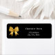 Un fond noir décoré d'un grand ruban doré. Personnalisez et ajoutez votre nom et adresse. Lettres blanches.