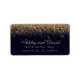 Étiquette d'adresse moderne bleu marine avec confettis dorés. Beaux confettis dorés vintage simples sur un fond bleu marine. Ce design moderne personnalisé peut être facilement personnalisé avec vos propres détails.
