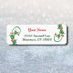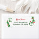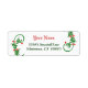 Étiquettes d'adresse de retour modifiables avec des lettres rouges pour votre nom, et des lettres vert foncé encadrées par des guirlandes de saint