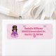 Ces adorables étiquettes d'adresse de retour de princesse rose présentent le dessin d'une jolie fille noire portant une belle robe de bal rose. Personnalisez ce mignon accessoire d'envoi d'anniversaire pour enfants avec le nom de votre enfant afro-américain sous le motif de coeur amusant.