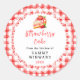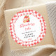 Cet autocollant amusant et fantaisiste présente un gâteau aux fraises sur un napperon en dentelle blanche et un fond à carreaux rouges. Il est parfait pour étiqueter vos produits faits maison. Le texte combine une écriture manuscrite et des polices serif pour un look élégant et moderne.